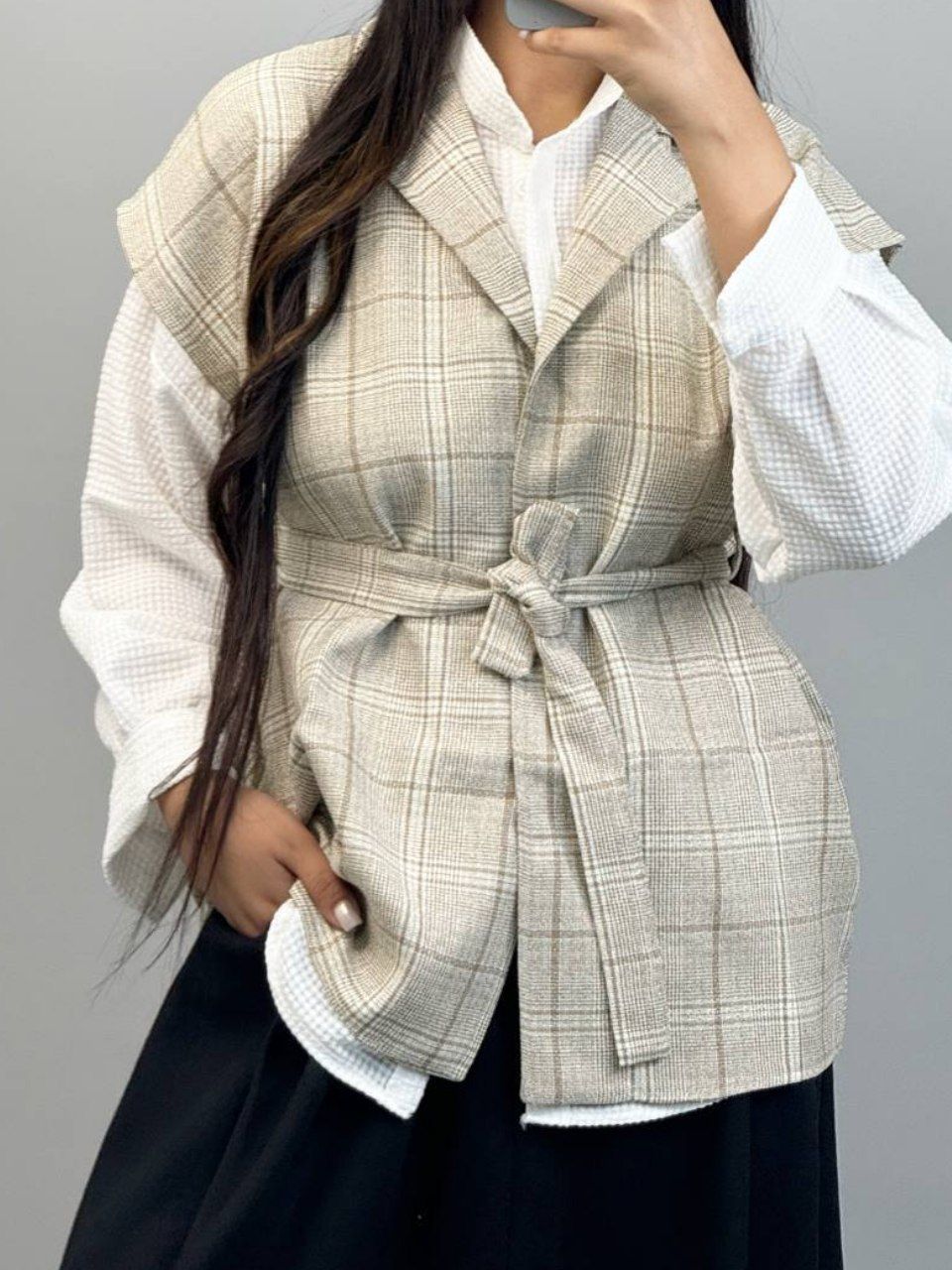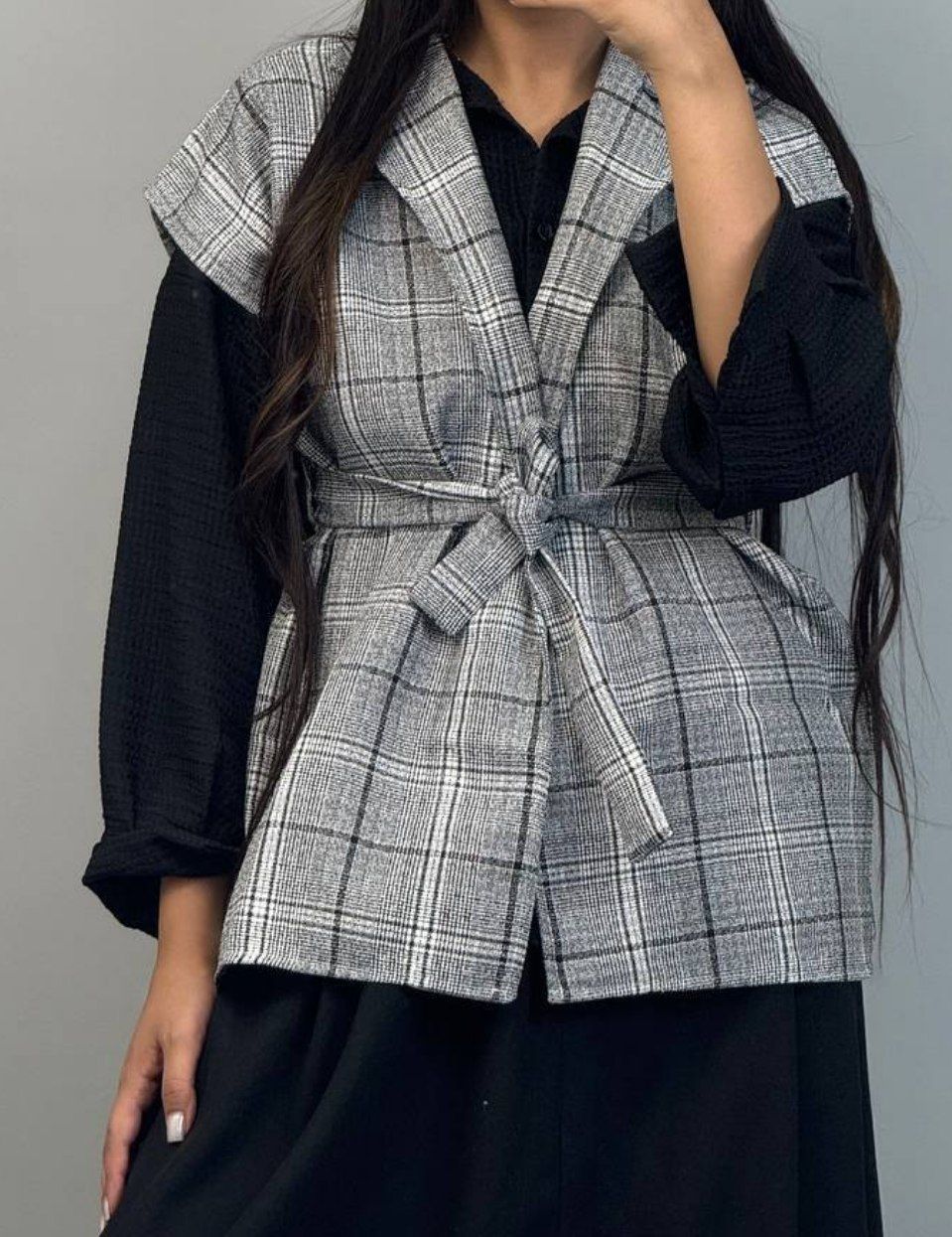 شومیز مشکی+وست طوسی